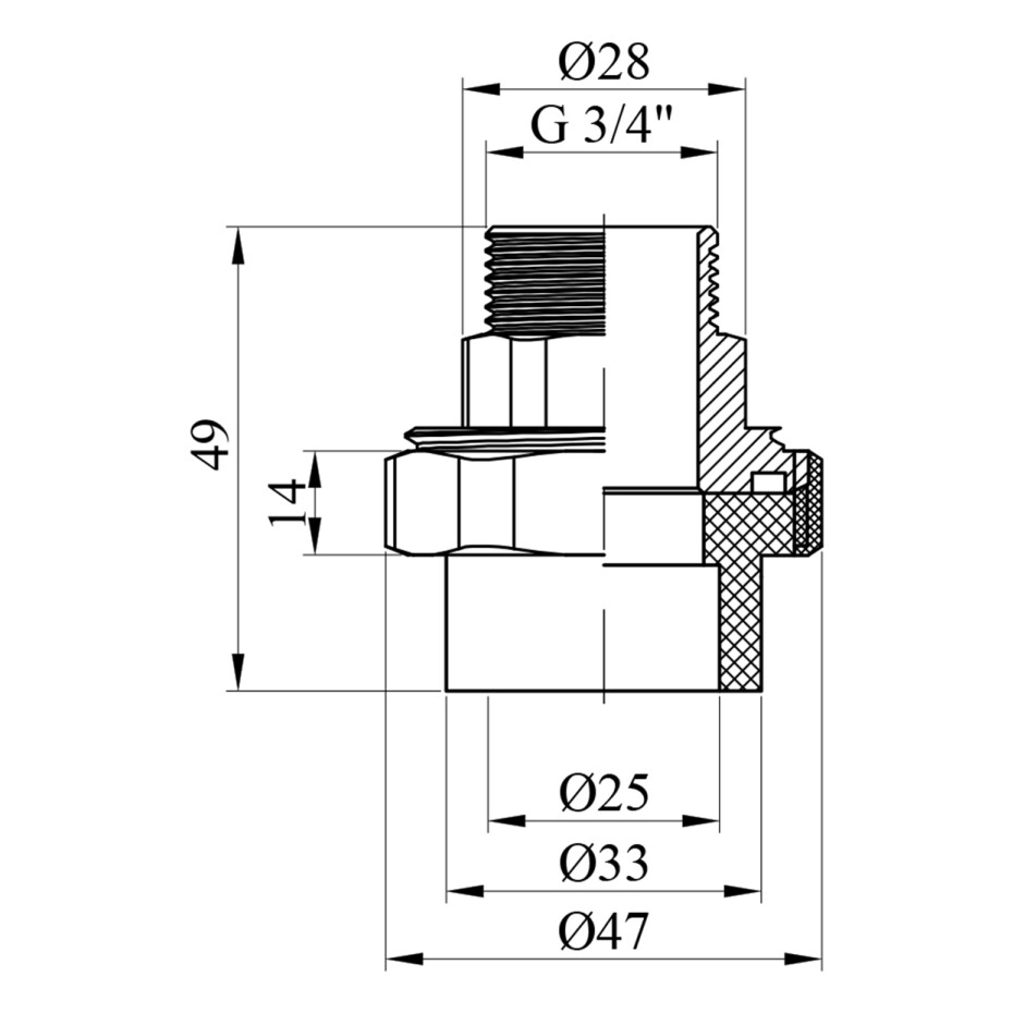 Діаметр підключення: 25х3/4"
