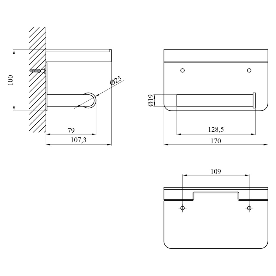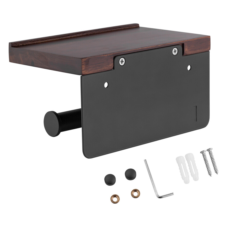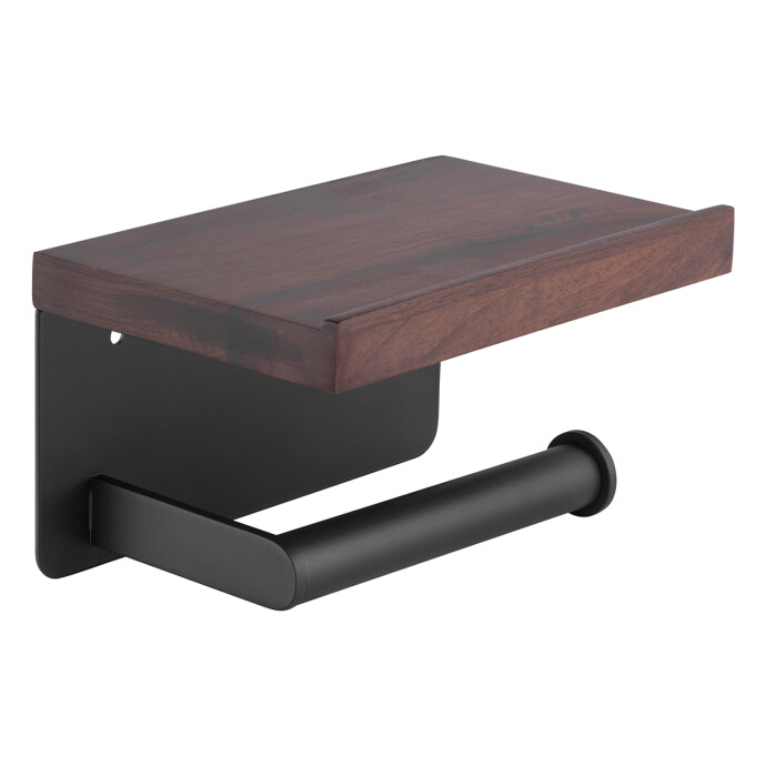 Полиця дозволяє зручно розміщувати дрібні предмети — телефон, освіжувач повітря або декор. Конструкція забезпечує легку заміну рулону паперу і надійне кріплення до стіни.