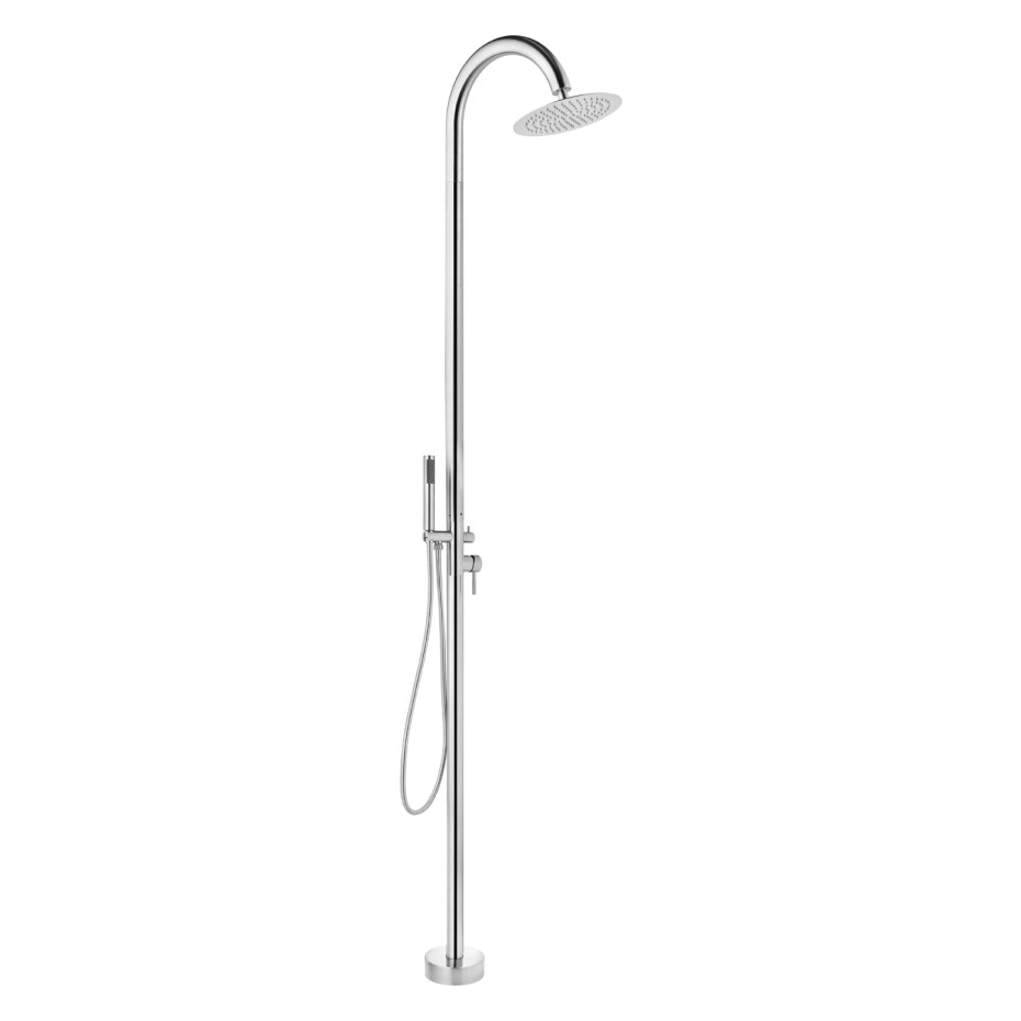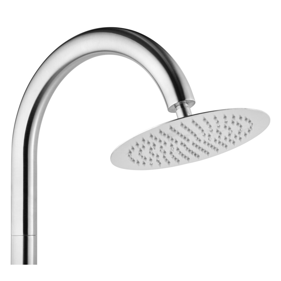 Нержавіюча сталь забезпечує захист від корозії, перепадів температур і впливу сонця. Душова колона ідеально підходить для басейнів, дачних ділянок, приватних терас, зон барбекю або SPA-просторів.
