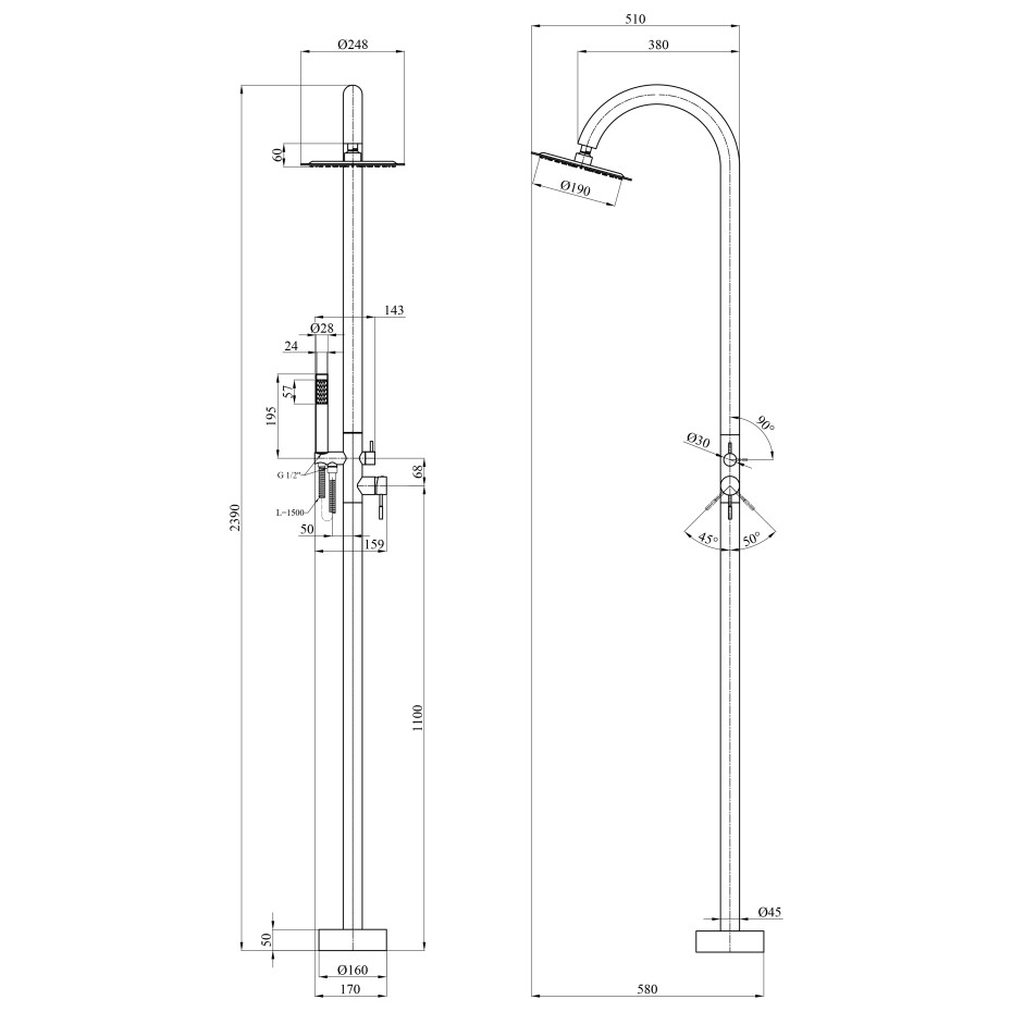Окремостояча конструкція дозволяє встановити душову колонну швидко й без монтажу в стіну. Ідеальний варіант для оновлення зони відпочинку без капітального ремонту.