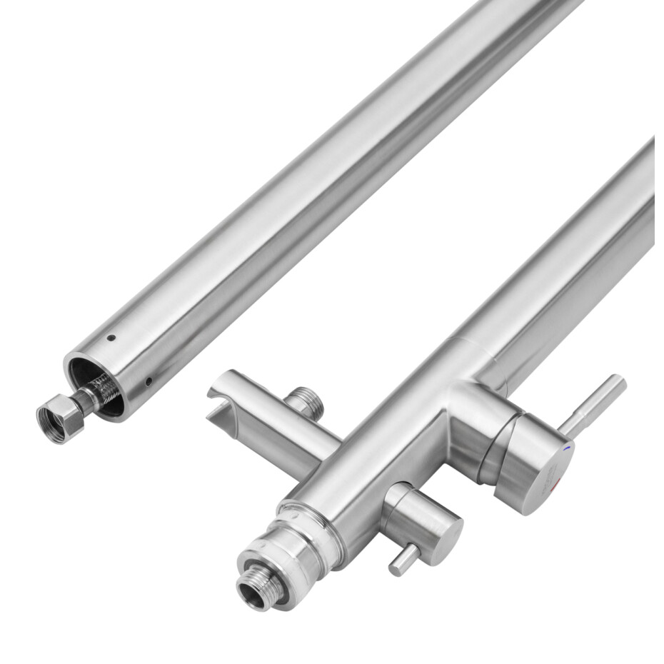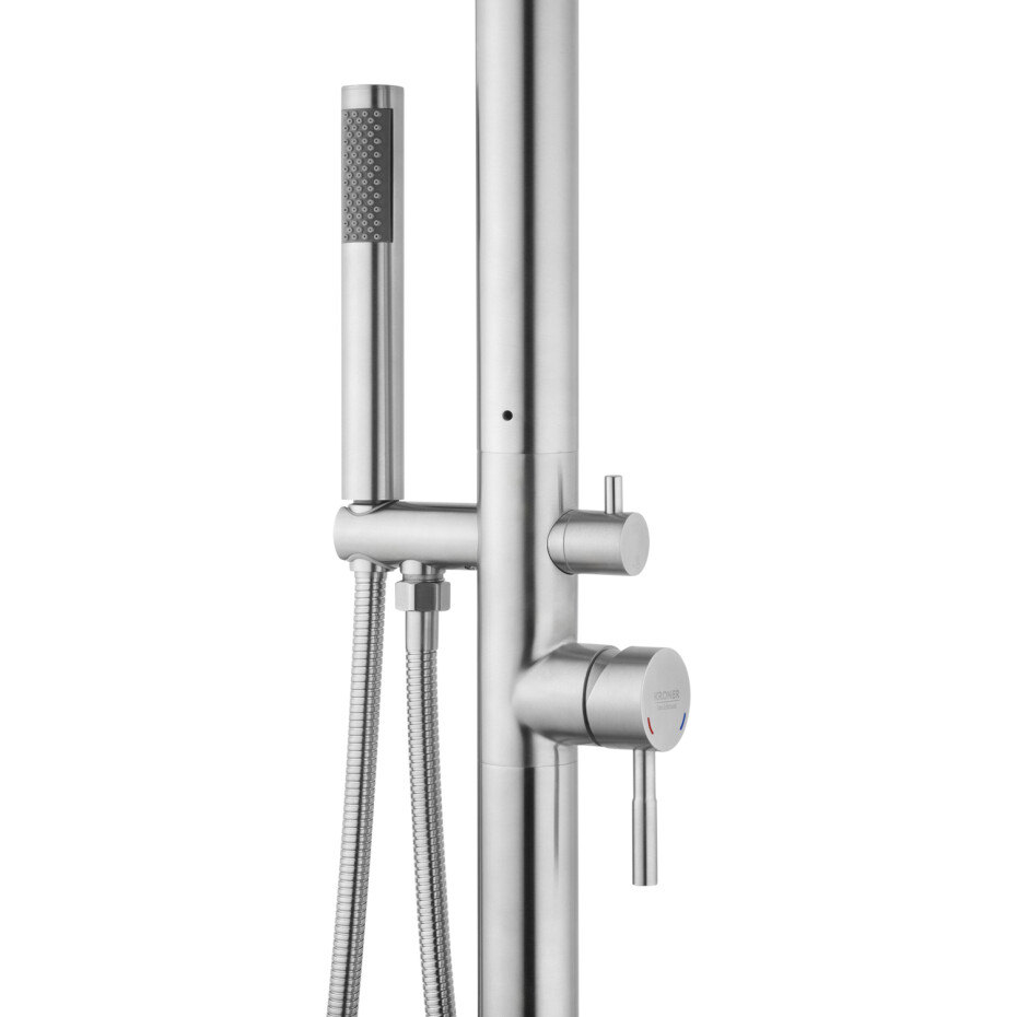 Вулична душова система Kroner Edelstahl Klassisch – ESG081 створена для щоденного комфортного використання на відкритому повітрі. Виготовлена з високоякісної нержавіючої сталі, вона гарантує довговічність, стійкість до корозії та стабільну роботу навіть у складних погодних умовах.