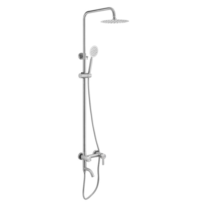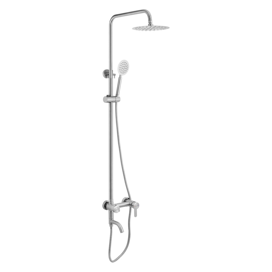 Система оснащена верхнім душем і ручною лійкою, забезпечує комфортне щоденне використання. Нержавіюча сталь стійка до корозії, вологи та зносу, легко очищається і довго зберігає акуратний зовнішній вигляд.