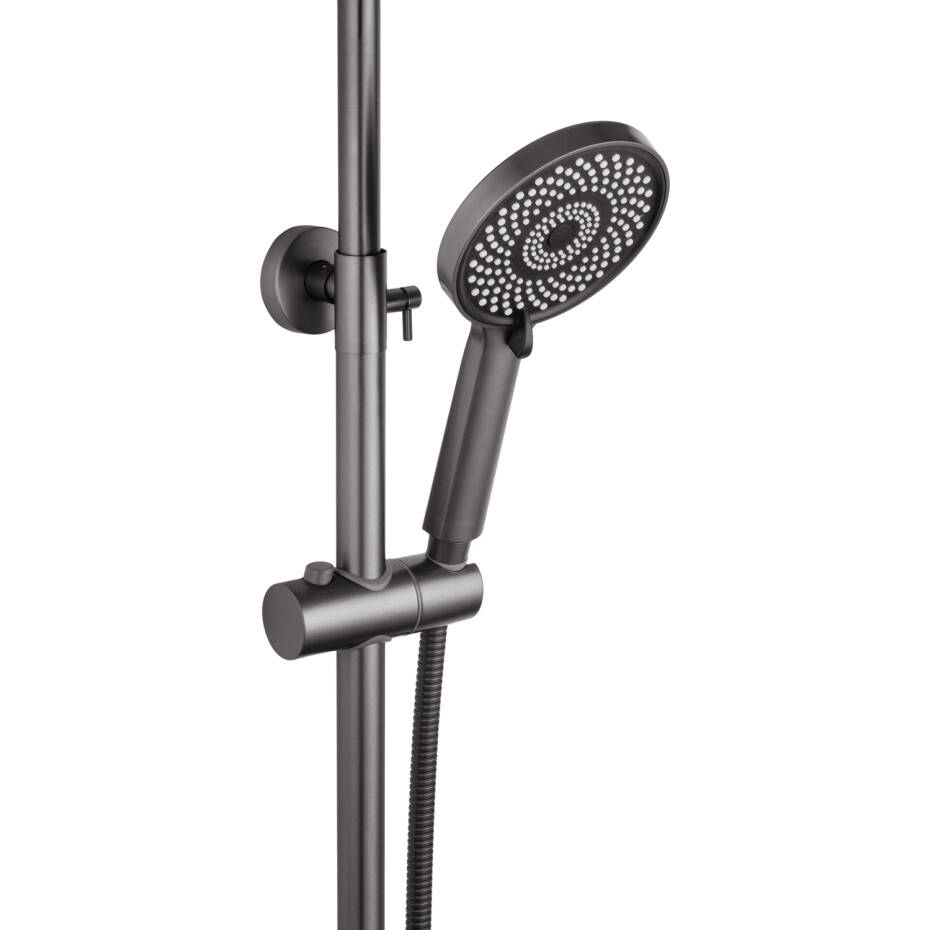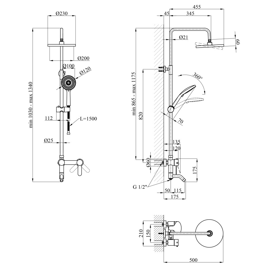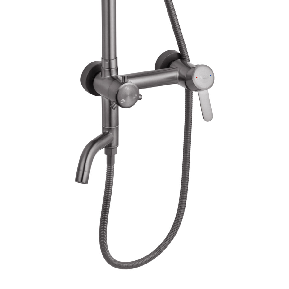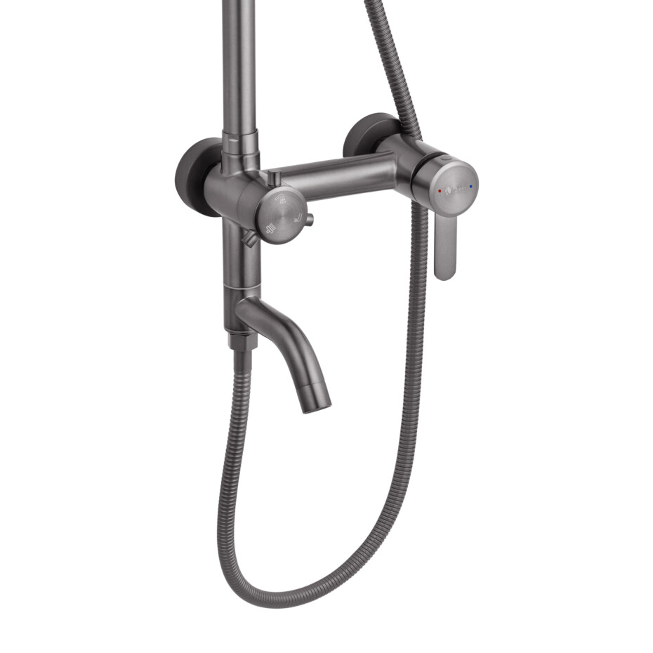 Система оснащена верхнім душем і ручною лійкою з 3 режимами подачі води, що дозволяє вибрати оптимальний тип струменя для комфортних водних процедур. Регульована по висоті штанга забезпечує зручність використання для всіх членів сім'ї.