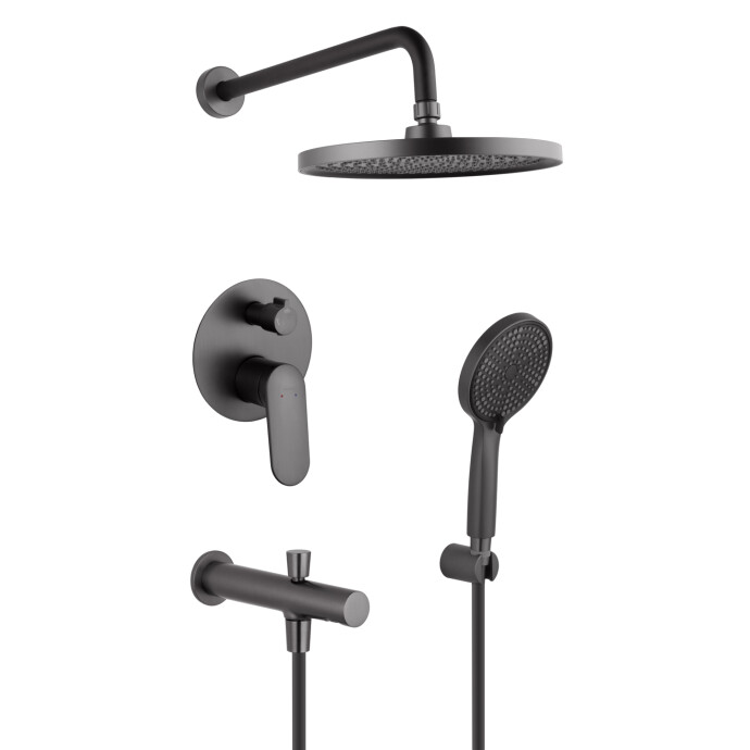 Душова система вбудована Kroner Element 211335А-5301 (графіт) — стильне і функціональне рішення для сучасної ванної кімнати. Глибокий графітовий колір надає інтер'єру стриману елегантність і підкреслює актуальний дизайн, гармонійно поєднуючись з іншими елементами сантехніки. Матова поверхня практична в догляді, стійка до відбитків і легко очищається, зберігаючи акуратний зовнішній вигляд.