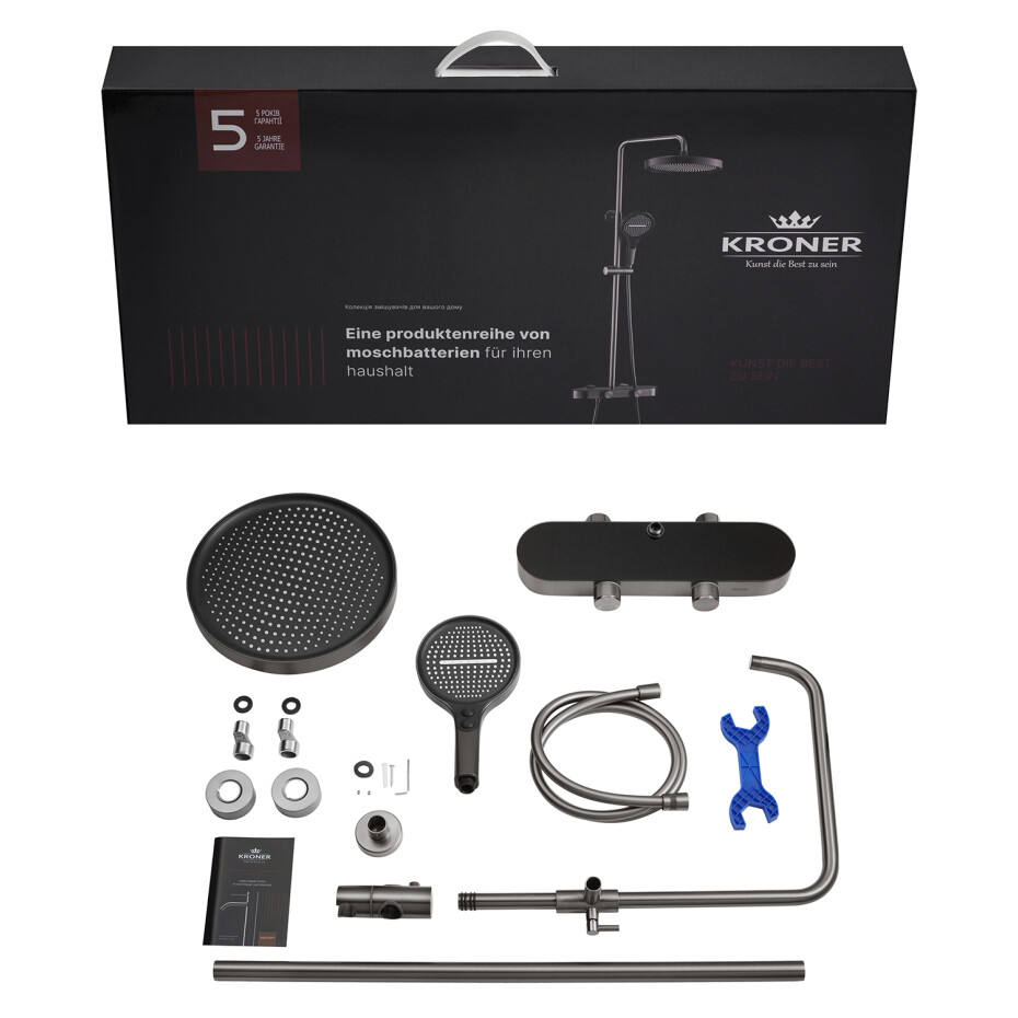Душова система Kroner KRP Makon - GRP0637 – це сучасне рішення для тих, хто цінує комфорт, якість та стиль у ванній кімнаті. Вона поєднує у собі продуману ергономіку, функціональність та сучасний дизайн у графітовому кольорі, що виглядає ефектно й гармонійно вписується у будь-який інтер’єр.