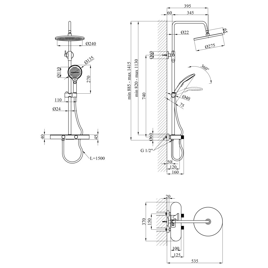 Особливістю моделі є регульована висота душової стійки від 820 до 1130 мм, завдяки чому систему зручно підлаштовувати під зріст та індивідуальні потреби кожного члена сім’ї.