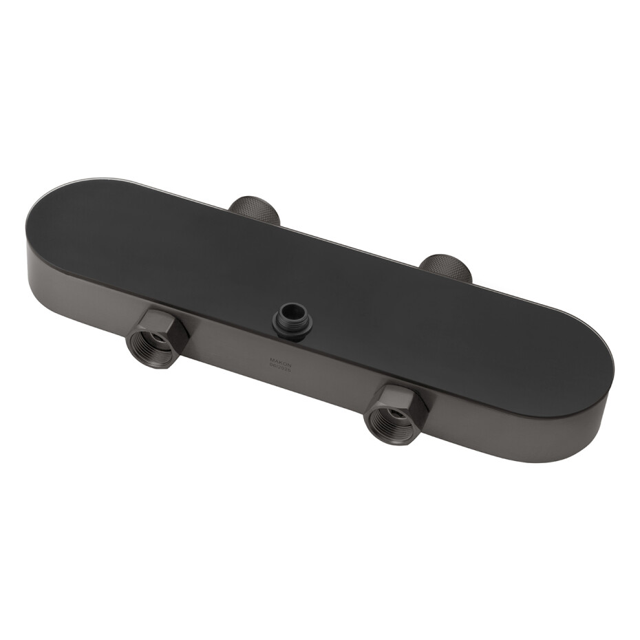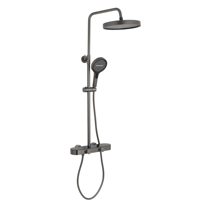 Конструкція виготовлена з латуні та міцного ABS пластику, що гарантує довговічність, стійкість до корозії та механічних пошкоджень. Двошарове нікель-хромове покриття у поєднанні з графітовим відтінком робить систему не лише надійною, а й візуально привабливою.