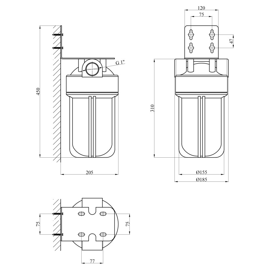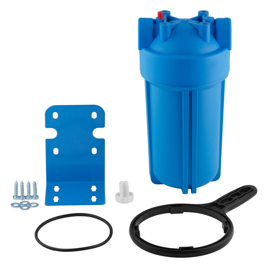Корпус виготовлений із міцного пластику та оснащений надійною пластиковою різьбою. Конструкція передбачає використання стандартних картриджів типорозміру Big Blue 10", що робить фільтр універсальним і простим в обслуговуванні.