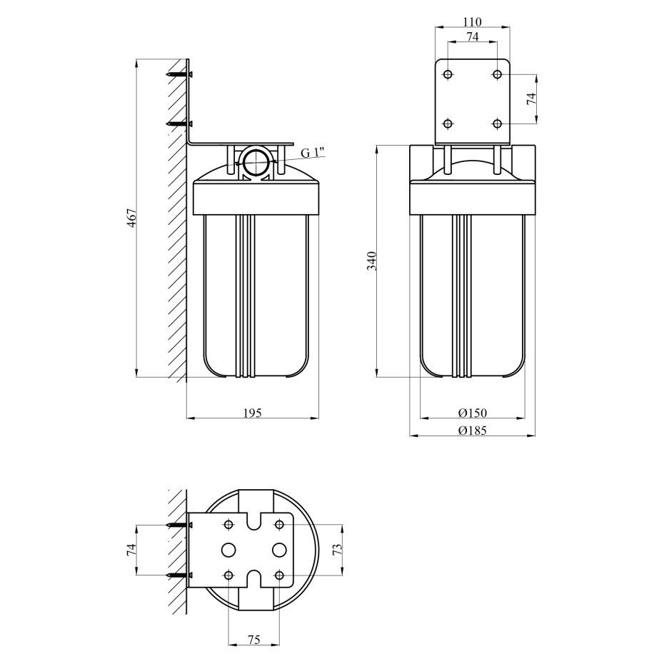 Комплектація: корпус фільтра, фільтруючий картридж, кронштейн, ключ.