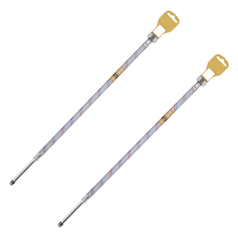 Гнучка підводка для підключення змішувача Kroner KRM 1/2"×M10 ВЗ 50 см в нейлоновому обплетенні з покриттям ПВХ (пара) - надійний елемент для підключення кухонних та умивальних змішувачів до системи гарячого і холодного водопостачання. Гнучка конструкція полегшує монтаж і дозволяє швидко виконувати