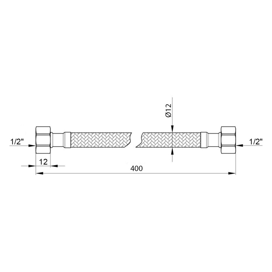 Опис до товару: Гнучка підводка для підключення води Kroner KRM 1/2" ВВ 40 см в нейлоновому обплетенні покритому ПВХ