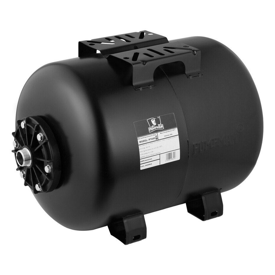 PUMPMAN 50 H — горизонтальний гідроакумулятор на 50 літрів, розроблений для ефективної роботи в системах автономного та центрального водопостачання. Дозволяє знизити навантаження на насос, продовжуючи термін його служби, та забезпечує стабільний тиск води.