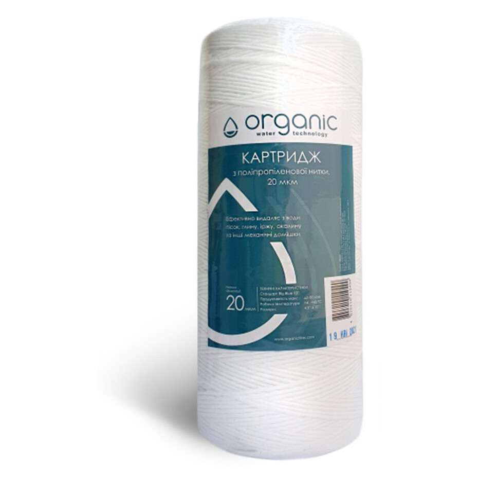 Картридж із поліпропіленової нитки Organic DMSW10BB20 - використовується для очищення води від завислих частинок діаметром до 10 мкм у магістральних фільтрах, які встановлюються на вході у квартиру чи будинок. Даний механічний картридж має щільну структуру намотування поліпропіленового шнура, що дозволяє ефективно затримувати всі механічні домішки, що містяться у водопровідній воді. Термін служби 4 – 6 місяців.
