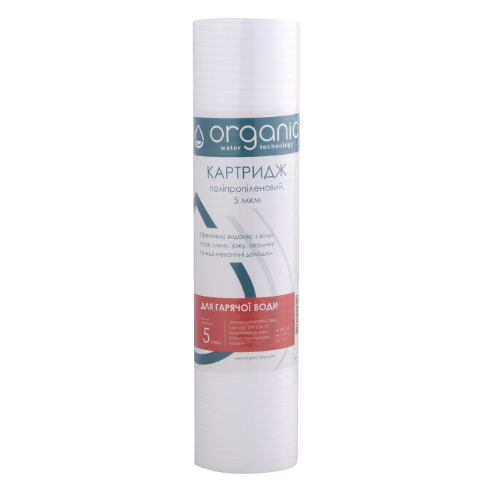 Картридж поліпропіленовий Organic DM10PP5Н використовується для видалення з гарячої води більших механічних домішок. Як фільтруючий матеріал застосовується спінений поліпропілен.
