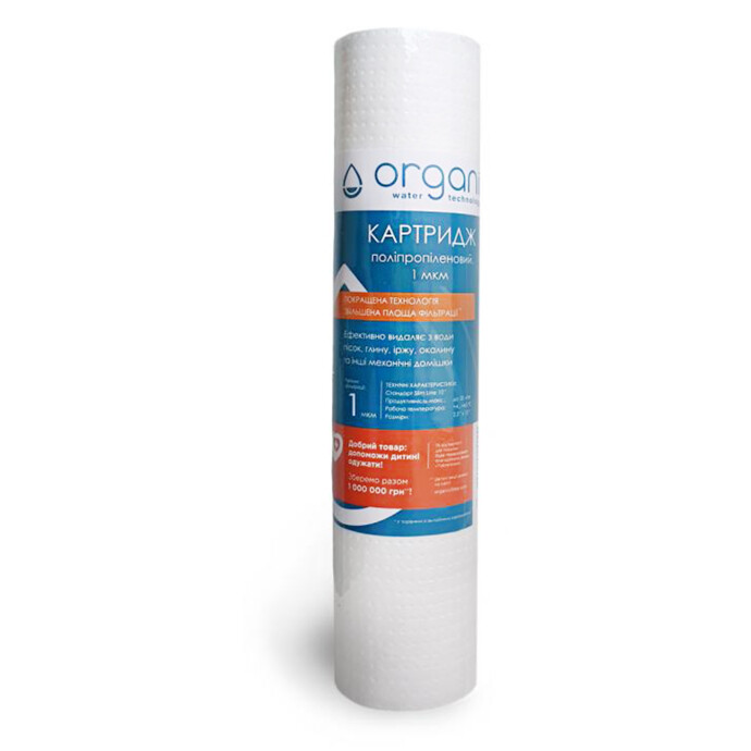 Картридж поліпропіленовий Organic DM10PP10 – використовується для очищення води від завислих частинок діаметром до 10 мкм у магістральних фільтрах, які встановлюються на вході у квартиру чи будинок. Даний механічний картридж має однорідну структуру, що дозволяє ефективно затримувати всі механічні домішки, що містяться у водопровідній воді. Ресурс картриджа 8000 л. Картридж необхідно міняти не рідше ніж 1 раз на 6 місяців, незалежно від об'єму очищеної води.