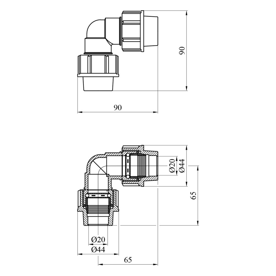 Коліно ПЕ SantehPlast 20х20 мм — це фітинг, призначений для з'єднання поліетиленових труб під кутом 90 градусів. Він використовується при монтажі систем водопостачання, каналізації та інших трубопровідних систем.