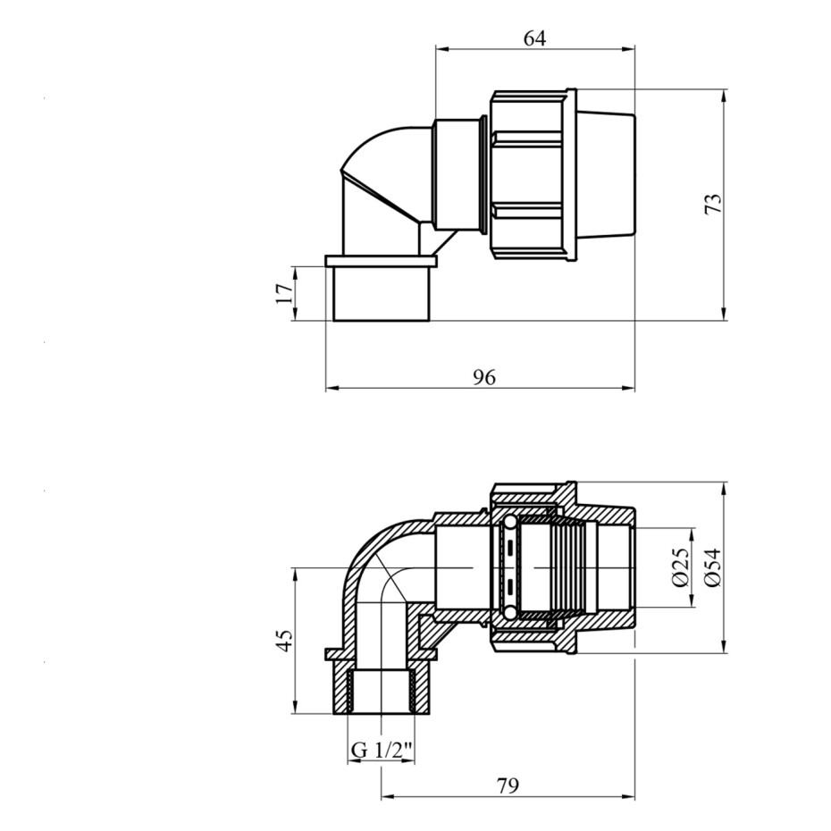 Коліно ПЕ SantehPlast 25х1/2" РВ — це компресійний фітинг, призначений для з'єднання поліетиленових труб під кутом 90 градусів з можливістю підключення до різьбового з'єднання. Він використовується при монтажі систем водопостачання, каналізації та інших трубопровідних систем.