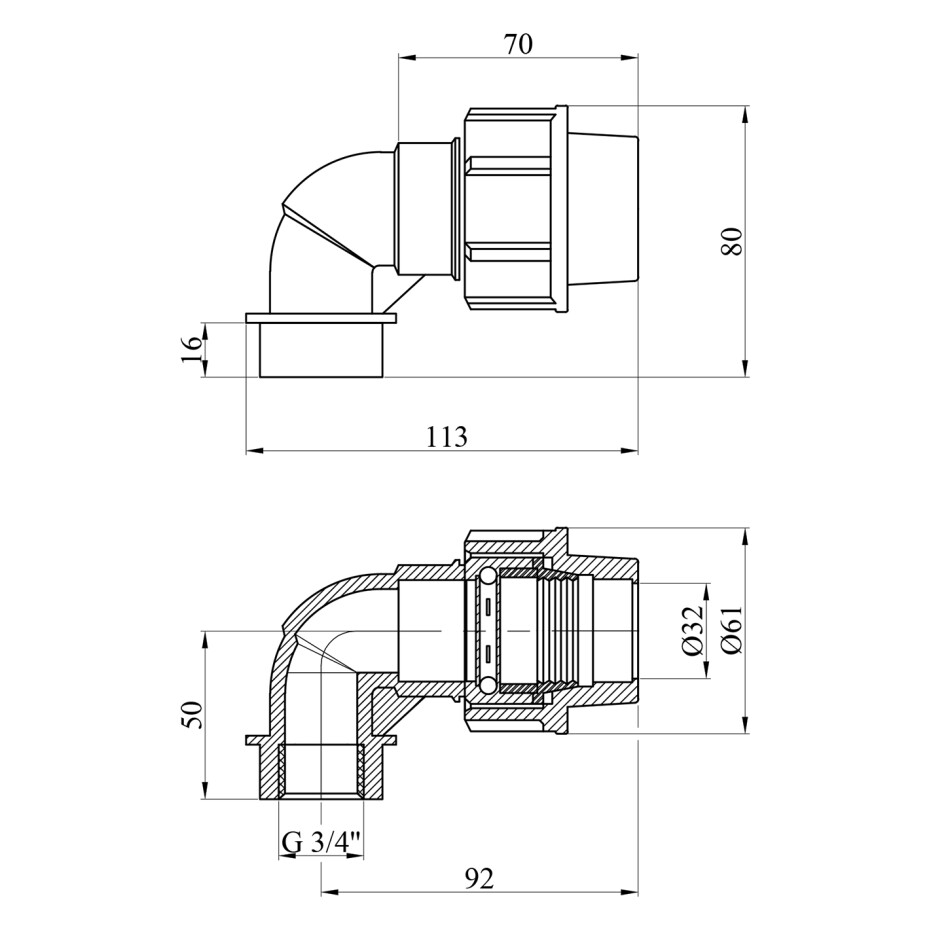 Коліно ПЕ SantehPlast 32х3/4" РВ — це компресійний фітинг, призначений для з'єднання поліетиленових труб під кутом 90 градусів з можливістю підключення до різьбового з'єднання. Він використовується при монтажі систем водопостачання, каналізації та інших трубопровідних систем.