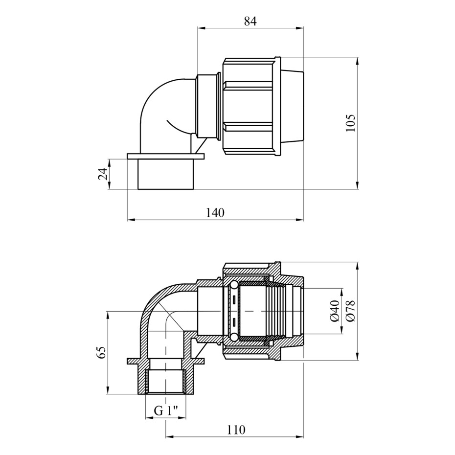 Опис до товару: Коліно ПЕ SantehPlast 40х1" РВ