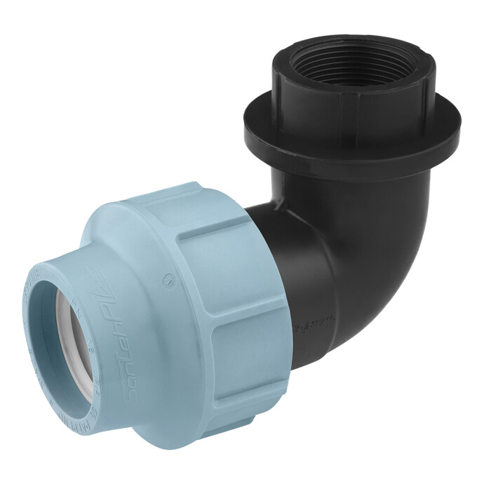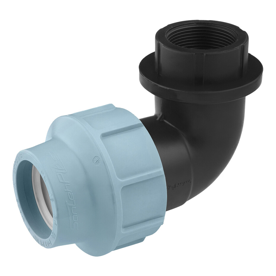 Коліно ПЕ SantehPlast 50х1 1/2" РВ — це компресійний фітинг, призначений для з'єднання поліетиленових труб під кутом 90 градусів з можливістю підключення до різьбового з'єднання. Він використовується при монтажі систем водопостачання, каналізації та інших трубопровідних систем.