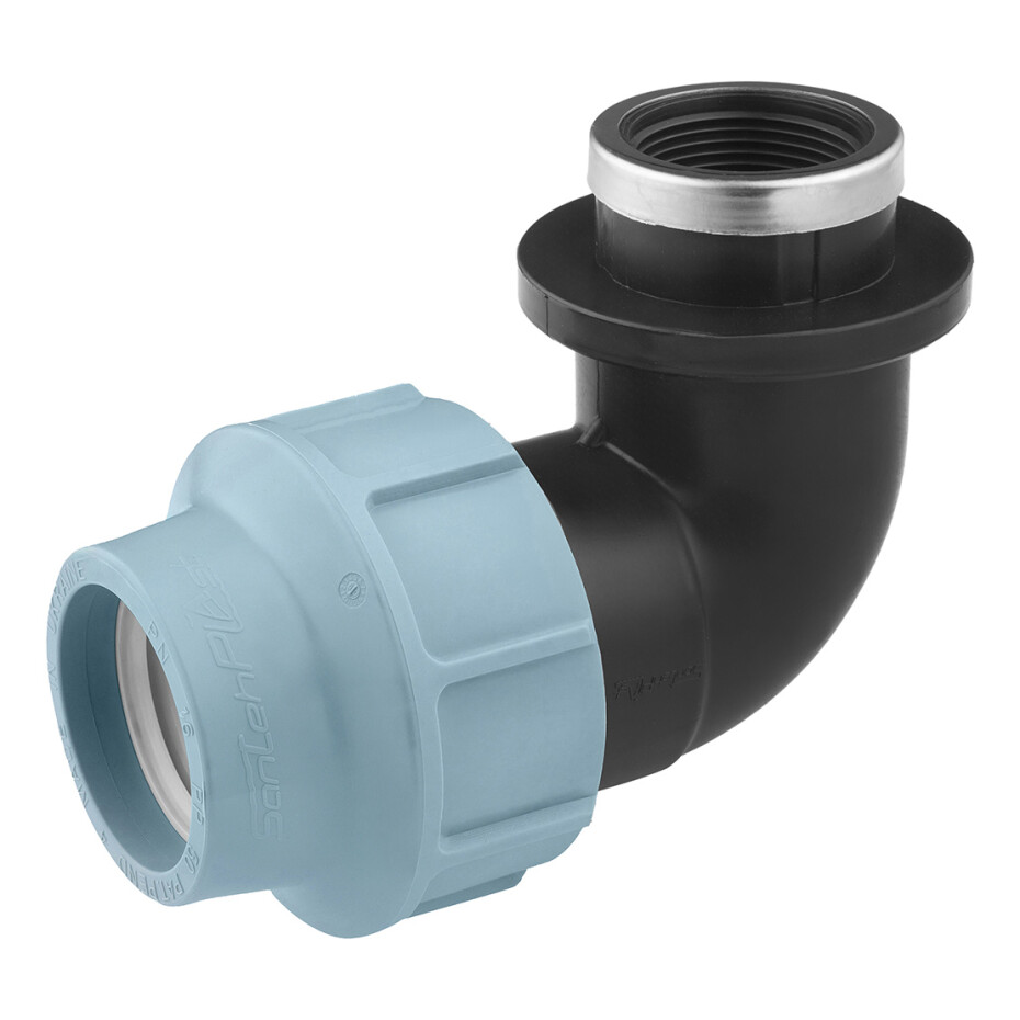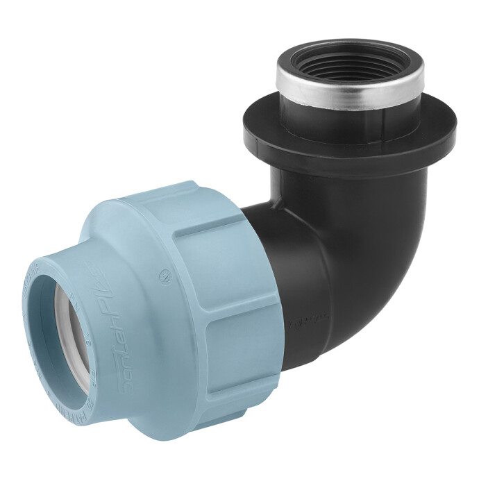 Коліно ПЕ SantehPlast 50х1 1/4" РВ — це компресійний фітинг, призначений для з'єднання поліетиленових труб під кутом 90 градусів з можливістю підключення до різьбового з'єднання. Він використовується при монтажі систем водопостачання, каналізації та інших трубопровідних систем.