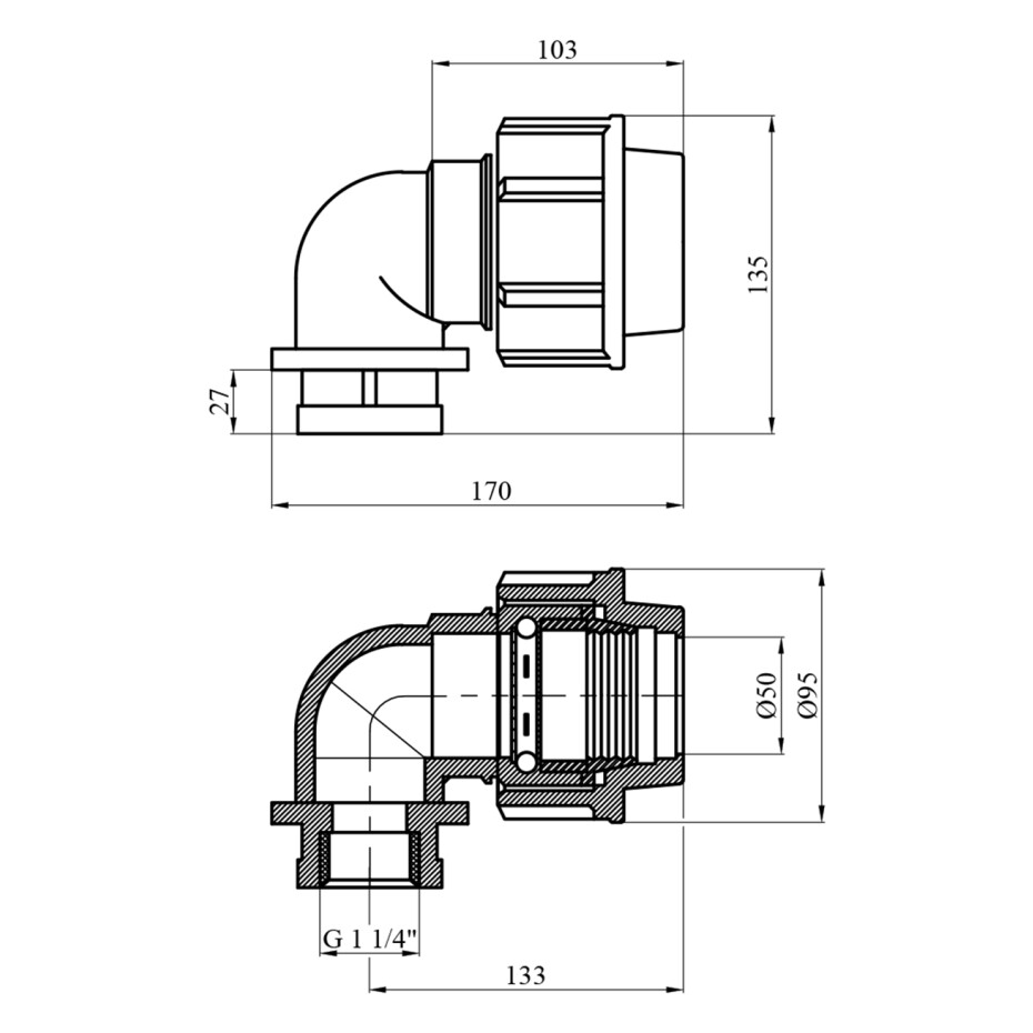 Опис до товару: Коліно ПЕ SantehPlast 50х1 1/4" РВ
