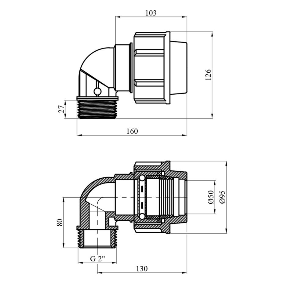 Коліно ПЕ SantehPlast 50х2" РЗ — це надійний і простий у монтажі фітинг, що забезпечує герметичне з'єднання поліетиленових труб з можливістю під'єднання до різьбового з'єднання. Він ідеально підходить для використання в різних системах водопостачання та каналізації.