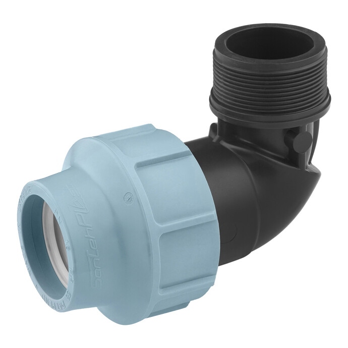 Коліно ПЕ SantehPlast 50х2" РЗ — це компресійний фітинг, призначений для з'єднання поліетиленових труб під кутом 90 градусів з можливістю підключення до різьбового з'єднання. Він використовується при монтажі систем водопостачання, каналізації та інших трубопровідних систем.