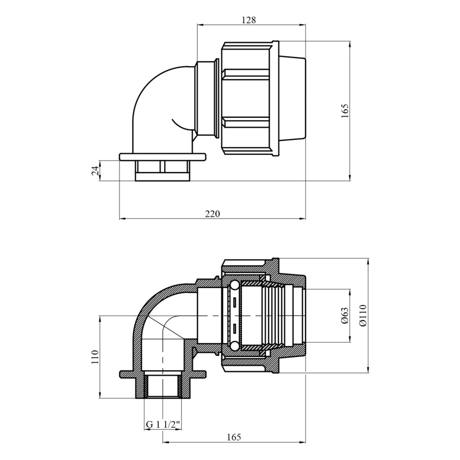 Опис до товару: Коліно ПЕ SantehPlast 63х1 1/2" РВ