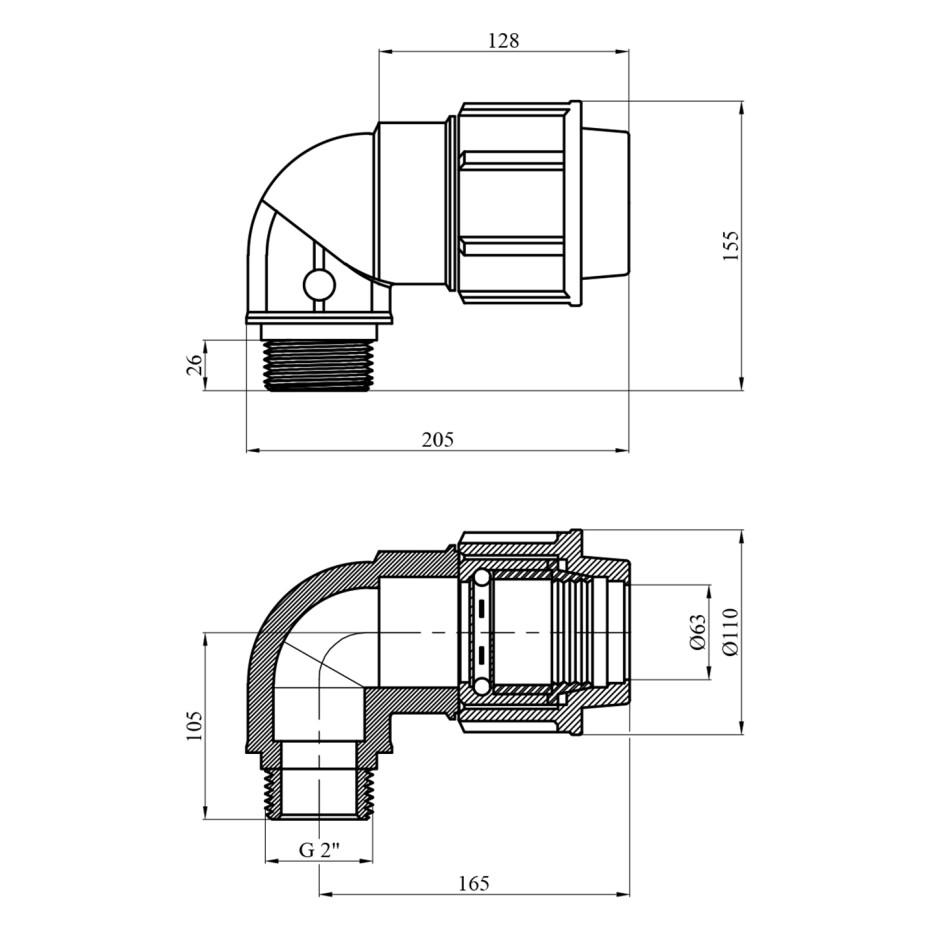 Коліно ПЕ SantehPlast 63х2" РЗ — це надійний і простий у монтажі фітинг, що забезпечує герметичне з'єднання поліетиленових труб з можливістю під'єднання до різьбового з'єднання. Він ідеально підходить для використання в різних системах водопостачання та каналізації.