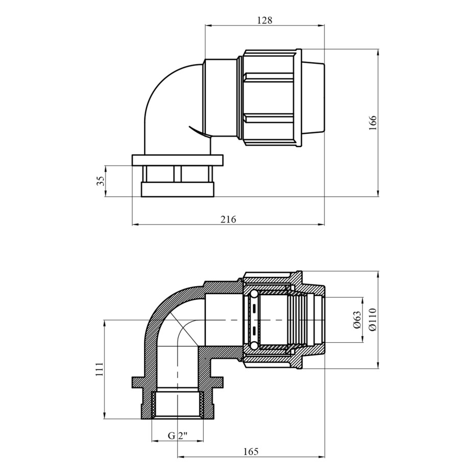 Коліно ПЕ SantehPlast 63х2" РВ — це компресійний фітинг, призначений для з'єднання поліетиленових труб під кутом 90 градусів з можливістю підключення до різьбового з'єднання. Він використовується при монтажі систем водопостачання, каналізації та інших трубопровідних систем.