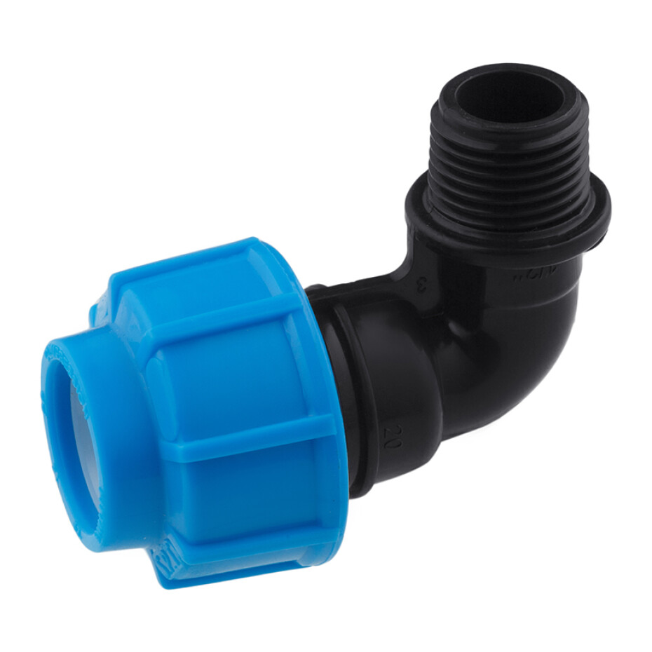 Коліно ПЕ SPT 20х1/2" РЗ — це комбінований компресійний (обтискний) фітинг, призначений для з'єднання поліетиленових (ПЕ) труб з різьбовими елементами. Воно дає змогу змінювати напрямок трубопроводу на 90 градусів і водночас під'єднувати пристрої або труби з внутрішнім різьбленням.