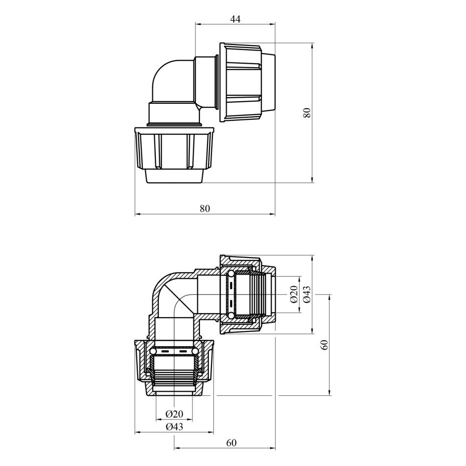 Опис до товару: Коліно ПЕ SPT 20х20 мм