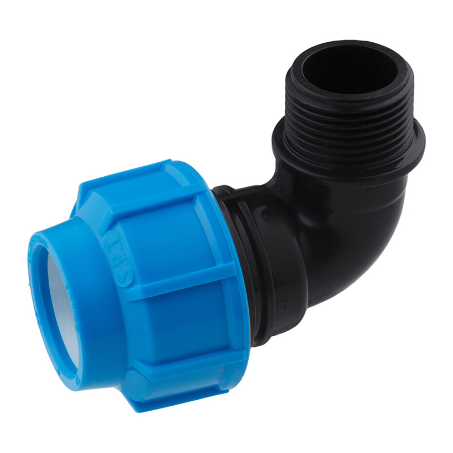 Коліно ПЕ SPT 32х1" РЗ — це комбінований компресійний (обтискний) фітинг, призначений для з'єднання поліетиленових (ПЕ) труб з різьбовими елементами. Воно дає змогу змінювати напрямок трубопроводу на 90 градусів і водночас під'єднувати пристрої або труби з внутрішнім різьбленням.