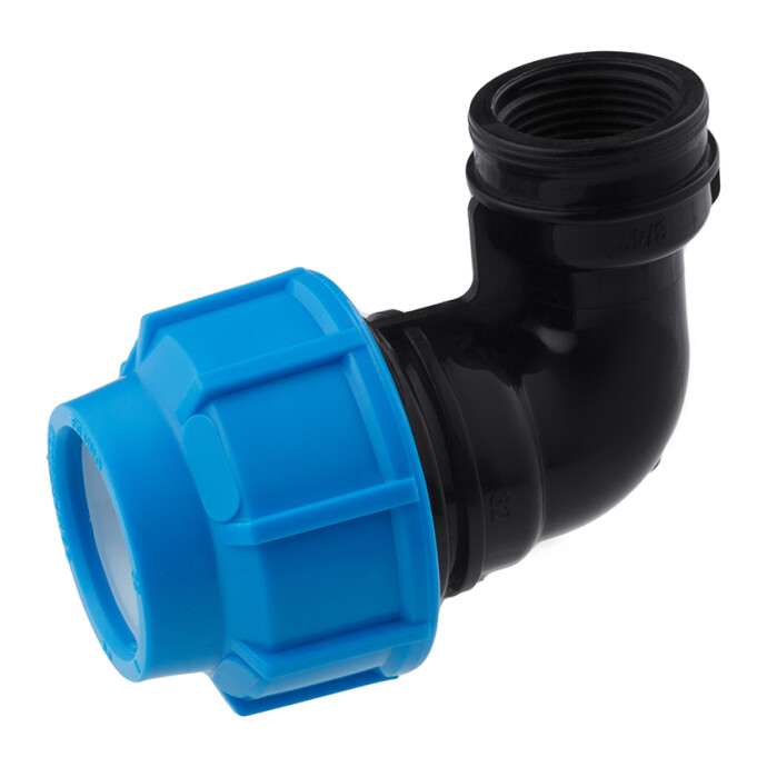 Коліно ПЕ SPT 32х3/4" РВ — це комбінований компресійний (обтискний) фітинг, призначений для з'єднання поліетиленових (ПЕ) труб з різьбовими елементами. Воно дає змогу змінювати напрямок трубопроводу на 90 градусів і одночасно під'єднувати пристрої або труби із зовнішнім різьбленням.
