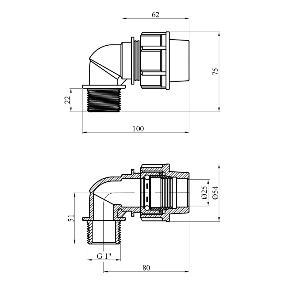 Коліно ПЕ STR 25х1" РЗ — це комбінований компресійний (обтискний) фітинг, призначений для з'єднання поліетиленових (ПЕ) труб з різьбовими елементами. Воно дає змогу змінювати напрямок трубопроводу на 90 градусів і водночас під'єднувати пристрої або труби з внутрішнім різьбленням.