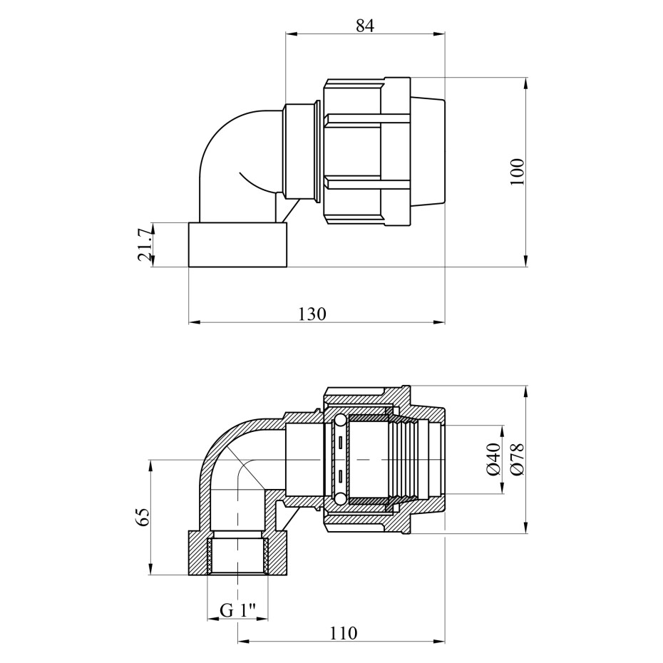 Коліно ПЕ STR 40х1" РВ — це комбінований компресійний (обтискний) фітинг, призначений для з'єднання поліетиленових (ПЕ) труб з різьбовими елементами. Воно дає змогу змінювати напрямок трубопроводу на 90 градусів і одночасно під'єднувати пристрої або труби із зовнішнім різьбленням.