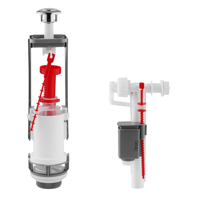 Комплект арматури NM — це готове рішення для оснащення змивного бачка унітаза, яке поєднує зливний механізм з однорежимною кнопкою та наливну арматуру з боковим підключенням 1/2". Призначений для стабільної, ефективної роботи та економного витрачання води.