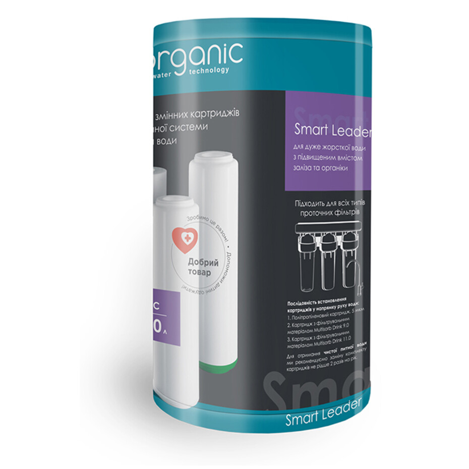 Комплект картриджів Smart Leader для проточного питного фільтра Organic Smart Trio Leader та Organic Smart Ultra Leader. Даний комплект картриджів Organic підійде для твердої водопровідної води з підвищеним вмістом заліза та органіки. У комплект входить 3 змінні картриджі, які очищають воду від більшості типу забруднень.