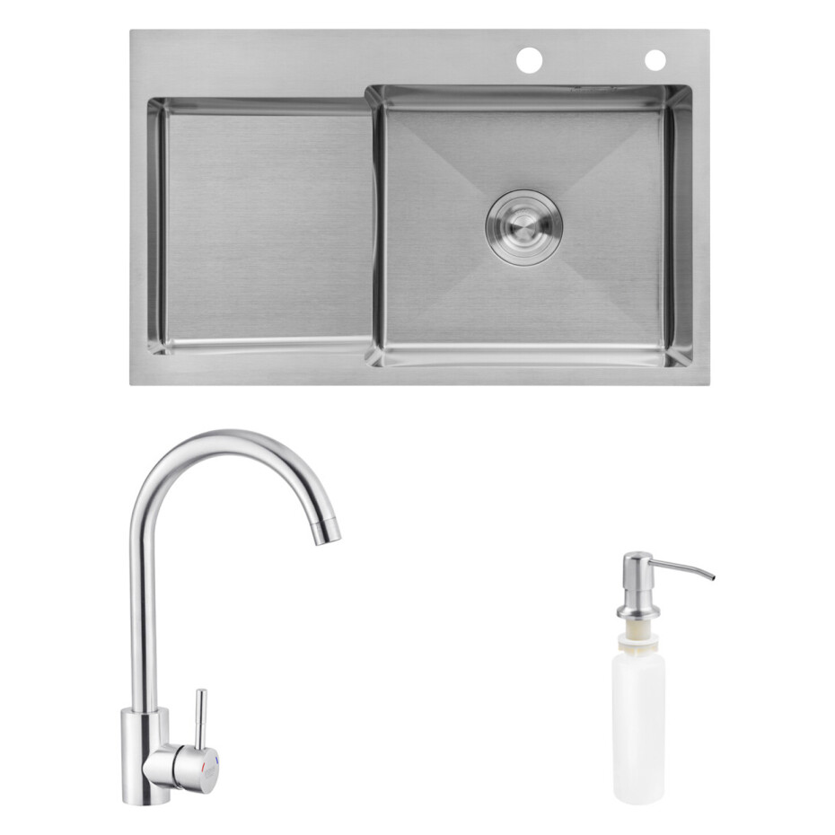 Опис до товару: Комплект кухонна мийка Kroner Gebürstet-7848RHM + змішувач Edelstahl Klassisch-ESG035 + дозатор Spender-016