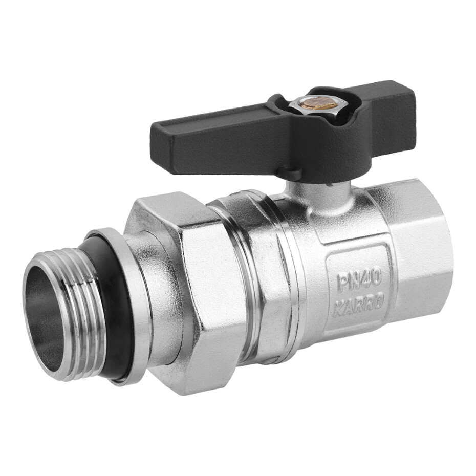 Кран-американка кульовий прямий з антипротіканням Karro "Uno Black" 1" ВЗ PN40, ручка «метелик»