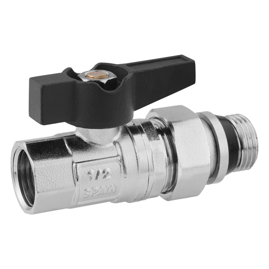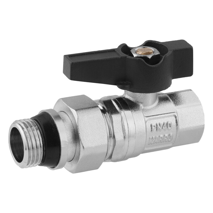 Кран-американка кульовий прямий з антипротіканням Karro "Uno Black" 1/2" ВЗ PN40, ручка «метелик»