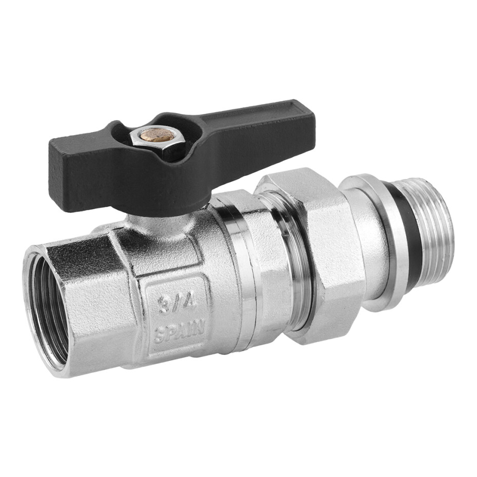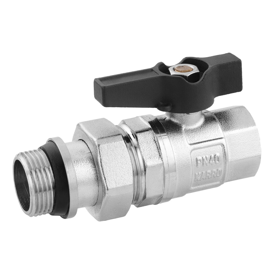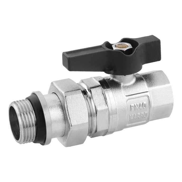 Кран-американка кульовий прямий з антипротіканням Karro "Uno Black" 3/4" ВЗ PN40, ручка «метелик»