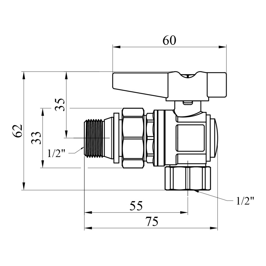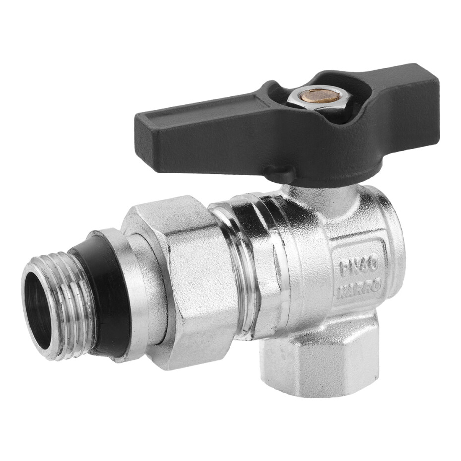 Karro UNO 1/2" ВЗ - це якісний кутовий кульовий кран з американкою, призначений для ефективного керування потоком води, стиснутого повітря і рідких вуглеводнів в побутових і промислових системах. Завдяки компактній формі і зручному типу з'єднання (внутрішнє/зовнішнє різьблення), він ідеально підходить для установки в умовах обмеженого простору. розведення трубопроводів.