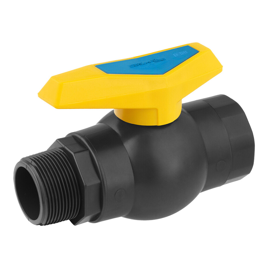 Кран ПЕ SantehPlast 1 1/2" ВЗ - це кульовий кран з комбінованим типом різьблення (внутрішня-зовнішня), призначений для використання в системах водопостачання, зрошення та технічних трубопроводів. Забезпечує надійне перекриття потоку води та зручність монтажу.