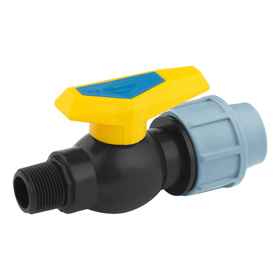 Кран ПЕ SantehPlast 25х3/4" РЗ - це кульовий кран з комбінованим з'єднанням: компресійним (25 мм) і різьбовим (3/4" зовнішнє різьблення, РЗ). Використовується в системах водопостачання, поливу та технічних трубопроводах, забезпечуючи надійне та герметичне з'єднання.