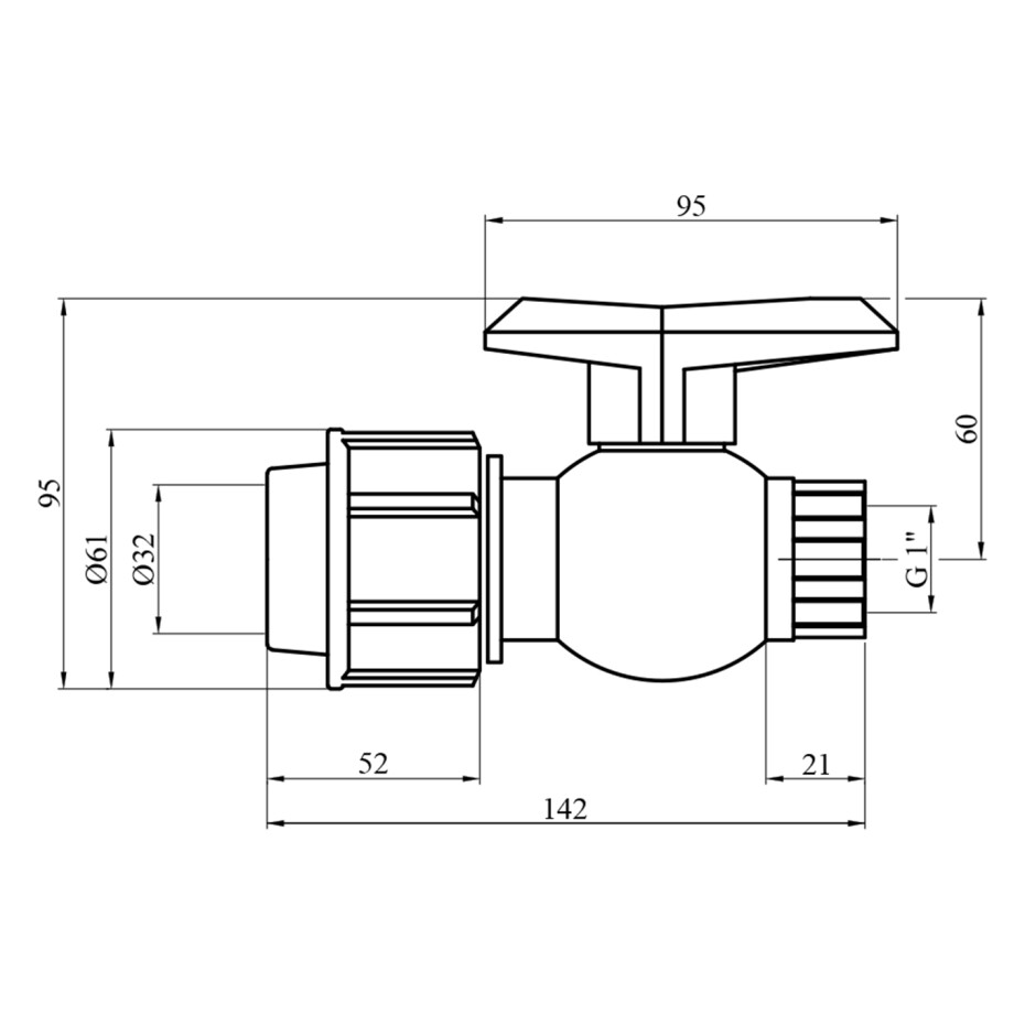 Кран ПЕ SantehPlast 32х1" РВ - це кульовий кран з комбінованим з'єднанням: компресійним (32 мм) і різьбовим (1" внутрішнє різьблення, РВ). Використовується в системах водопостачання, поливу та технічних трубопроводах, забезпечуючи надійне та герметичне з'єднання.