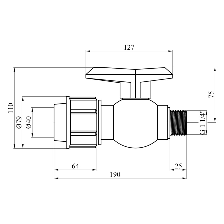 Тип з'єднання: компресійне (40 мм) × зовнішнє різьблення (РЗ) 1 1/4"