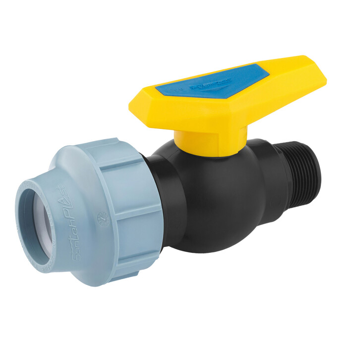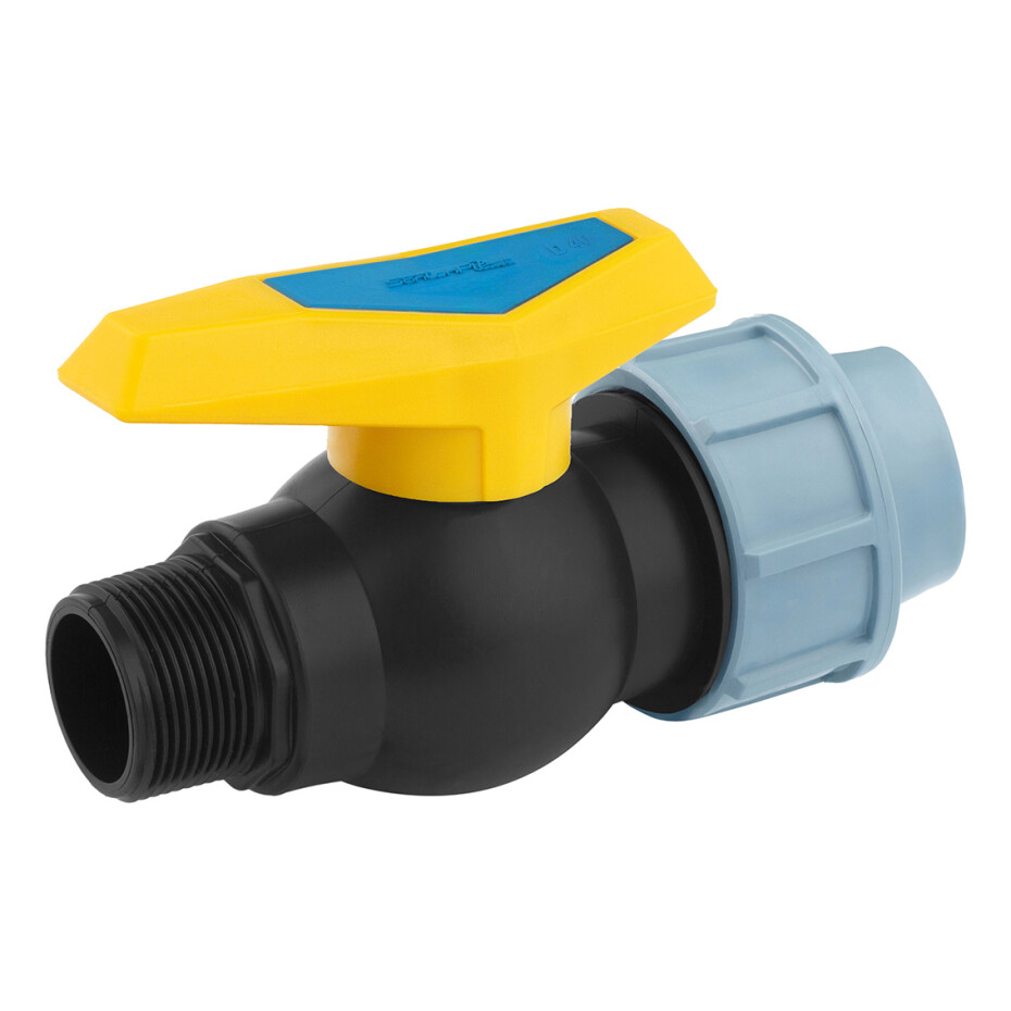 Кран ПЕ SantehPlast 40х1 1/4" РЗ - це кульовий кран з комбінованим з'єднанням: компресійним (40 мм) і різьбовим (1 1/4" зовнішнє різьблення, РЗ). Використовується в системах водопостачання, поливу та технічних трубопроводах, забезпечуючи надійне та герметичне з'єднання.