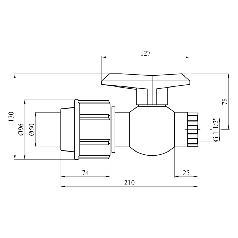 Кран ПЕ SantehPlast 50х1 1/2" РВ - це кульовий кран з комбінованим з'єднанням: компресійним (50 мм) і різьбовим (1 1/2" внутрішнє різьблення, РВ). Використовується в системах водопостачання, поливу та технічних трубопроводах, забезпечуючи надійне та герметичне з'єднання.